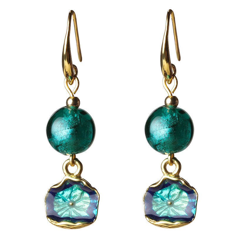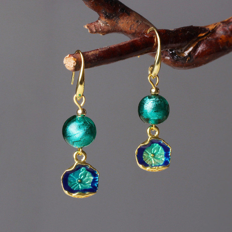 Peacock blue alloy ear hook earrings Peacock Blue 925 gold hook Peacock Blue Alloy U clip