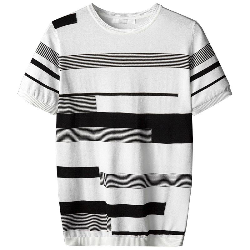 Round neck sweater male tide T-shirt summer style loose thin section ice silk knit cardiovert man half short sleeve beat bottom shirt 2021 new