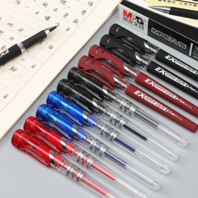 Morning light gel pen bold 1 0 Black signature pen 0 7 thick strokes Students use exam gel pen thick rod business office signature large capacity blue and red water-based pen Hard pen Calligraphy practice water-based
