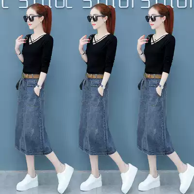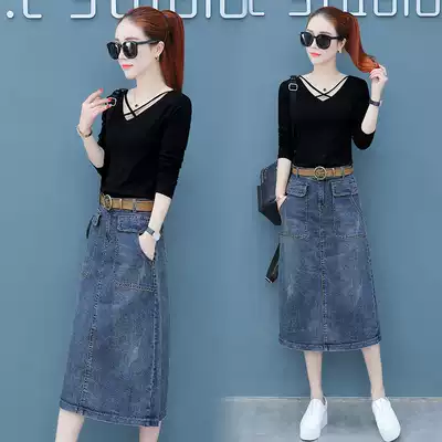 Denim temperament dress 2021 spring and autumn new skirt two-piece suit female anti-season silk mulberry silk summer