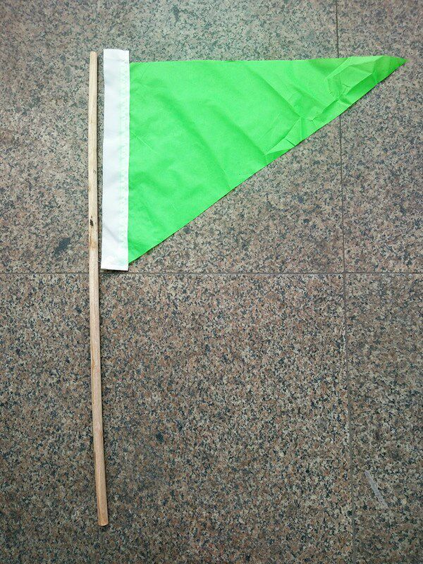 Triangular small red flag, fixed wind direction, command flag, guide flag, sports competition referee instructing hand semaphore, hand waving flag