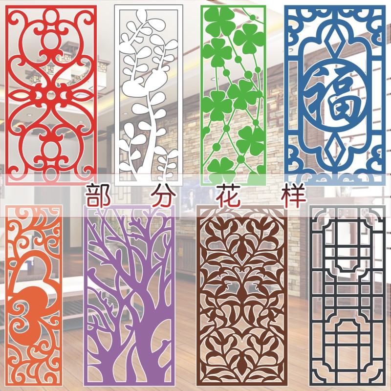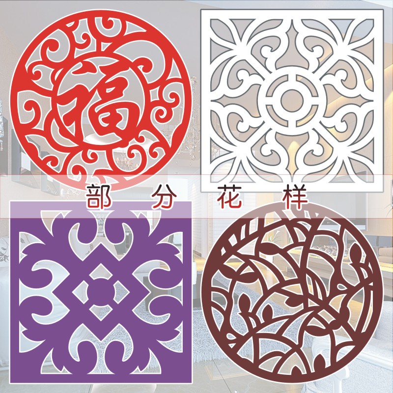 Carved board solid wood moon hole door and window wooden grille antique wood carving decorative corner flower hollow-out background wall lattice