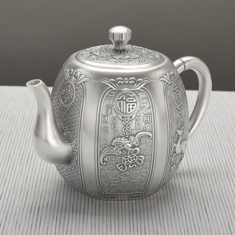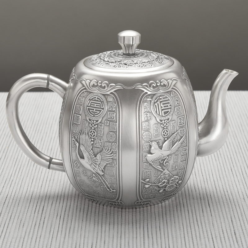 Tai'an Silver Industry Silver Pot Pure Silver 999 Tea Set Group Large Capacity Home Teapot Kongfu Tea Channel Cooking Water Bubble Teapot