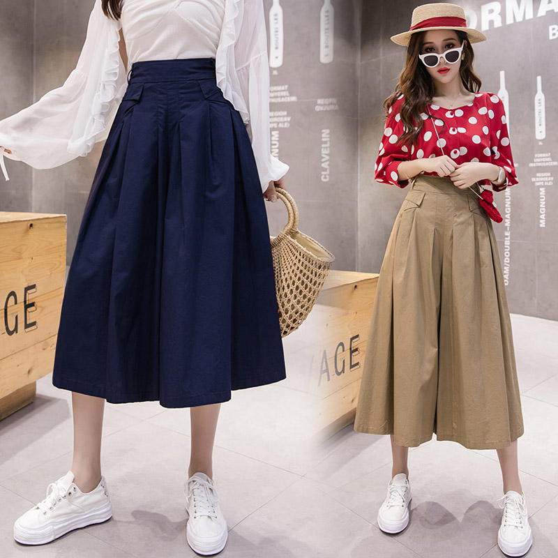 Special counter shopping malls withdraw brand cut standard single-tailed single high-waist overalls pants western style wide-leg hakama cropped skirt pants