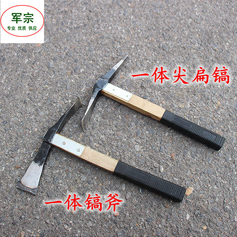 Forged steel pickaxe wood handle reinforced quenched pickaxe wood pickaxe tip flat pickaxe axe two use pickaxe digging tree crane mouth hoe