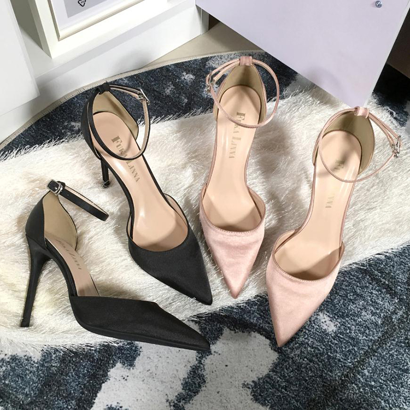 2022 New Spring Hundred Features French Girl Nude - colored High - heel Satin Skin Slip Hollow Single Shoes
