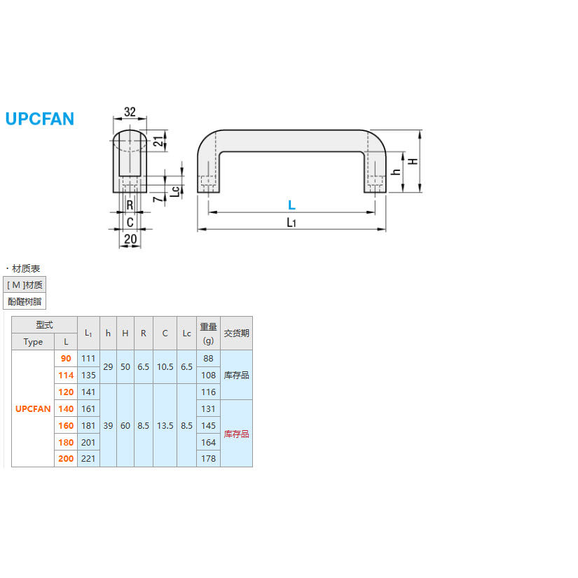 Replacement Mismi UPCFAN90114120140160180200 Phenolic resin handle external type