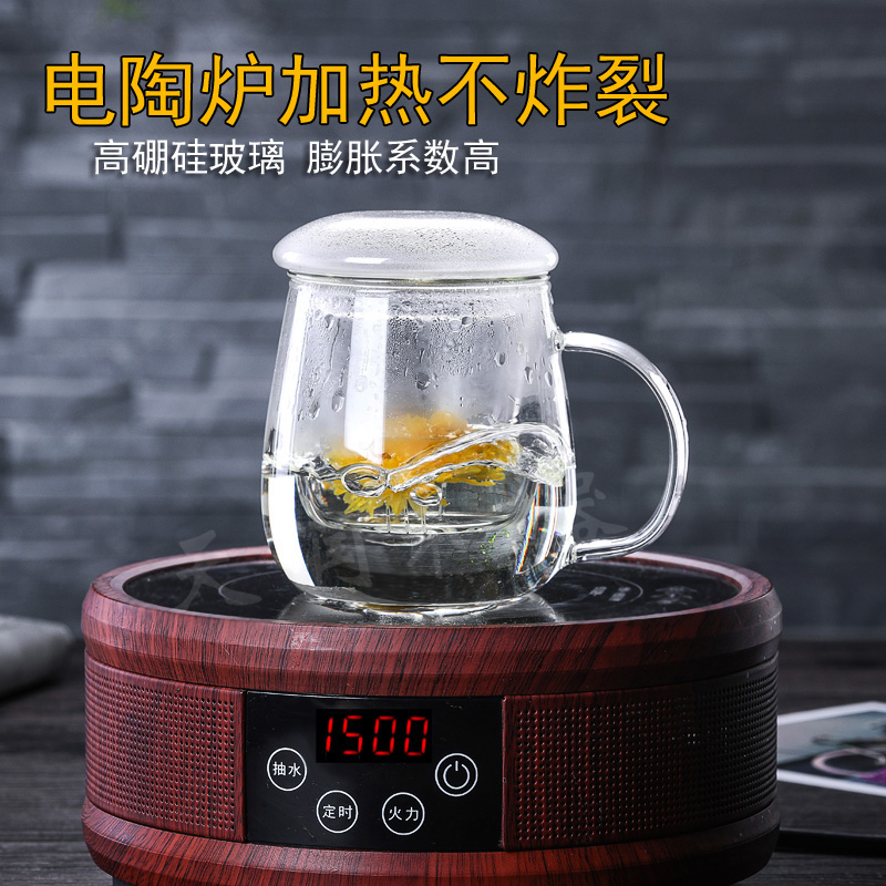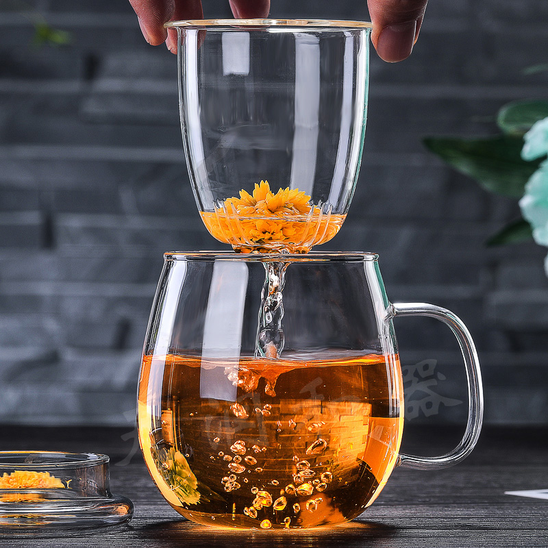 Tianrunheji heat-resistant thickened glass flower tea cup Tea cup filter liner Office cup Household water cup