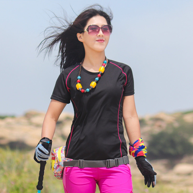 Quick-drying T-shirt women's outdoor sports short-sleeved round neck slim fit moisture-wicking sweat shirt micro-elastic large size summer
