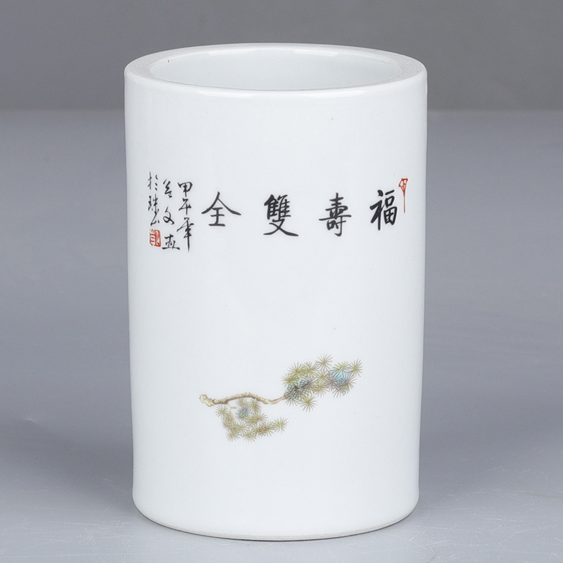 Great Qing Guangxu Year's Powder Color Fu Shoubi Whole Truong Deer Tattoo Pen Holder Imitation Ancient Porcelain Ancient Play Antique Vintage Materials