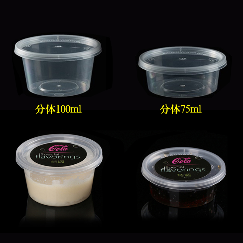 Grey black 75mlP2 two-piece sauce box 50 100mlP4 two-piece sauce box 50 200ml transparent round bowl 50 with lid 200ml black round bowl 5