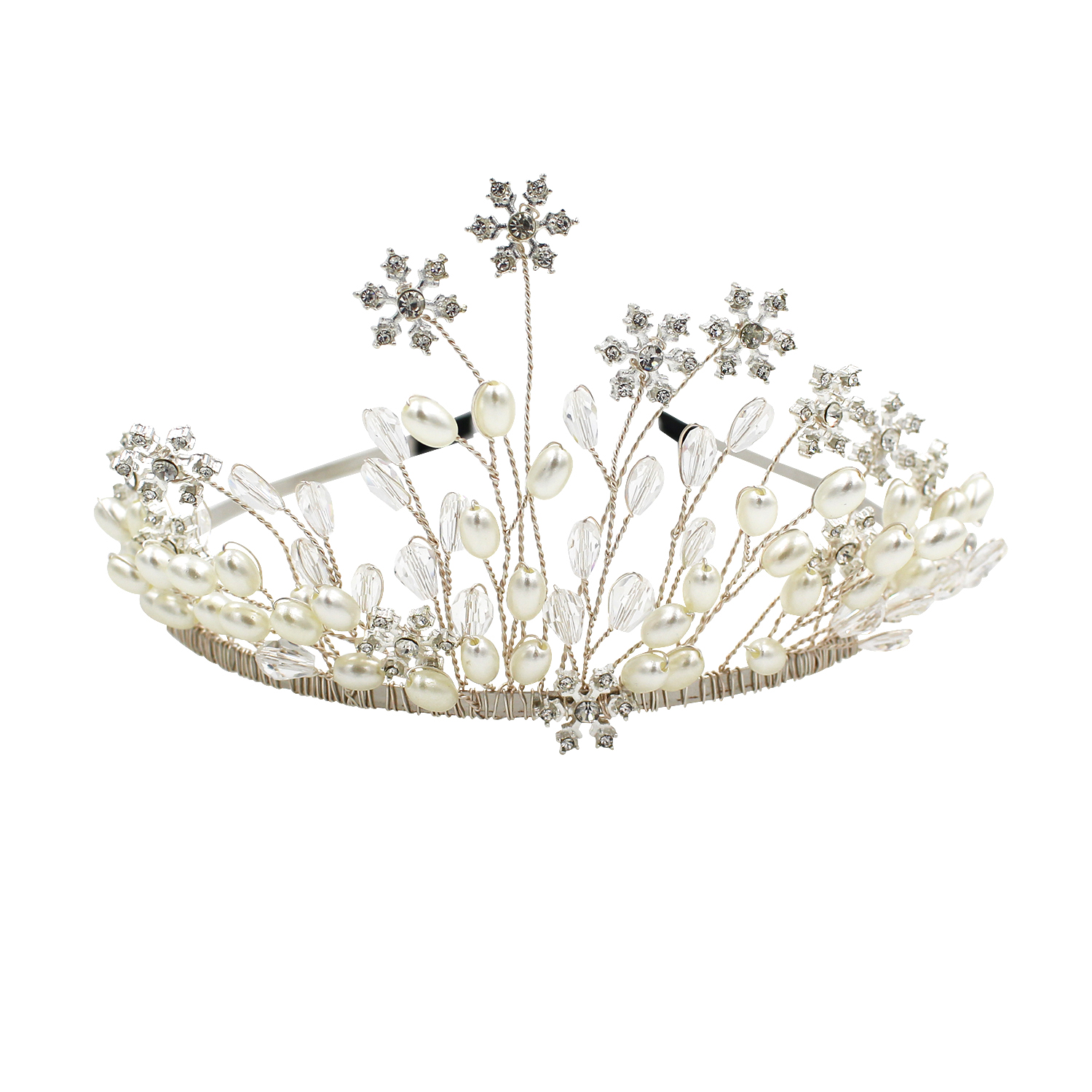 O397 fresh snowflake bride headdress Korean pearl wedding crown shape photo - panel accessories