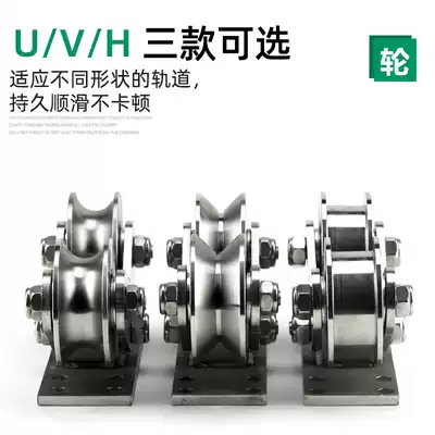 Stainless steel iron gate pulley aluminum Art door sliding door heavy bearing fixed pulley double wheel V type U channel steel pulley