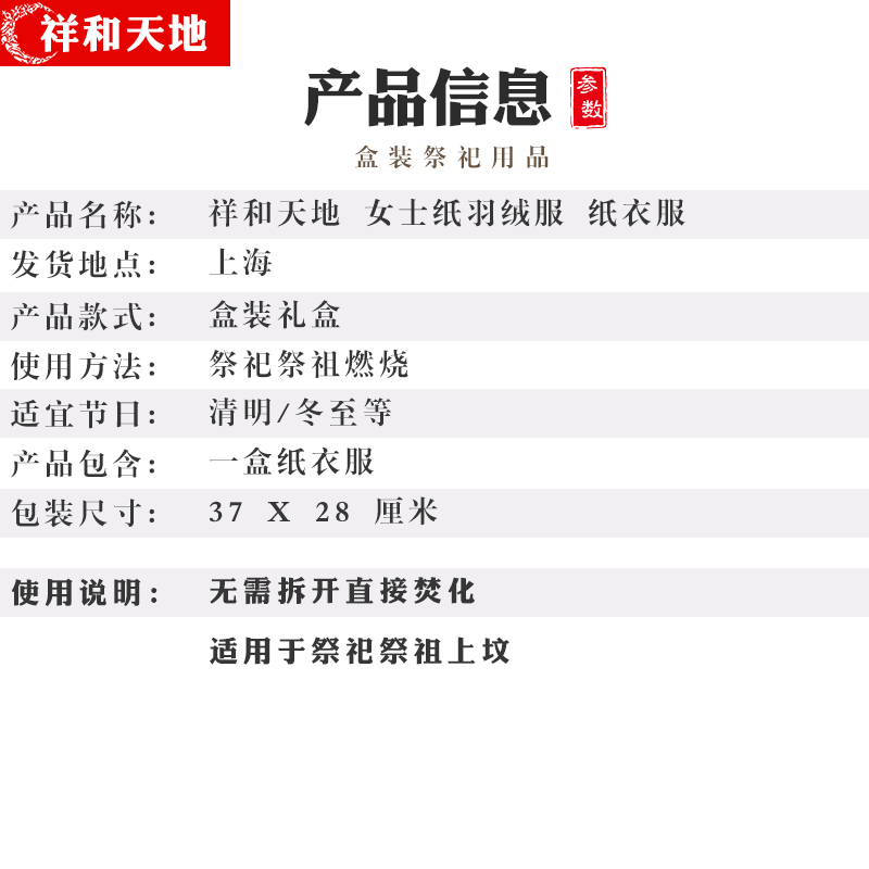 Xiang and new items Sacrificial Items Ladies Paper Zindi Women's Paper Down Clothing Paper Clothes Sacrifice to the Tomb Clear Winter Soli