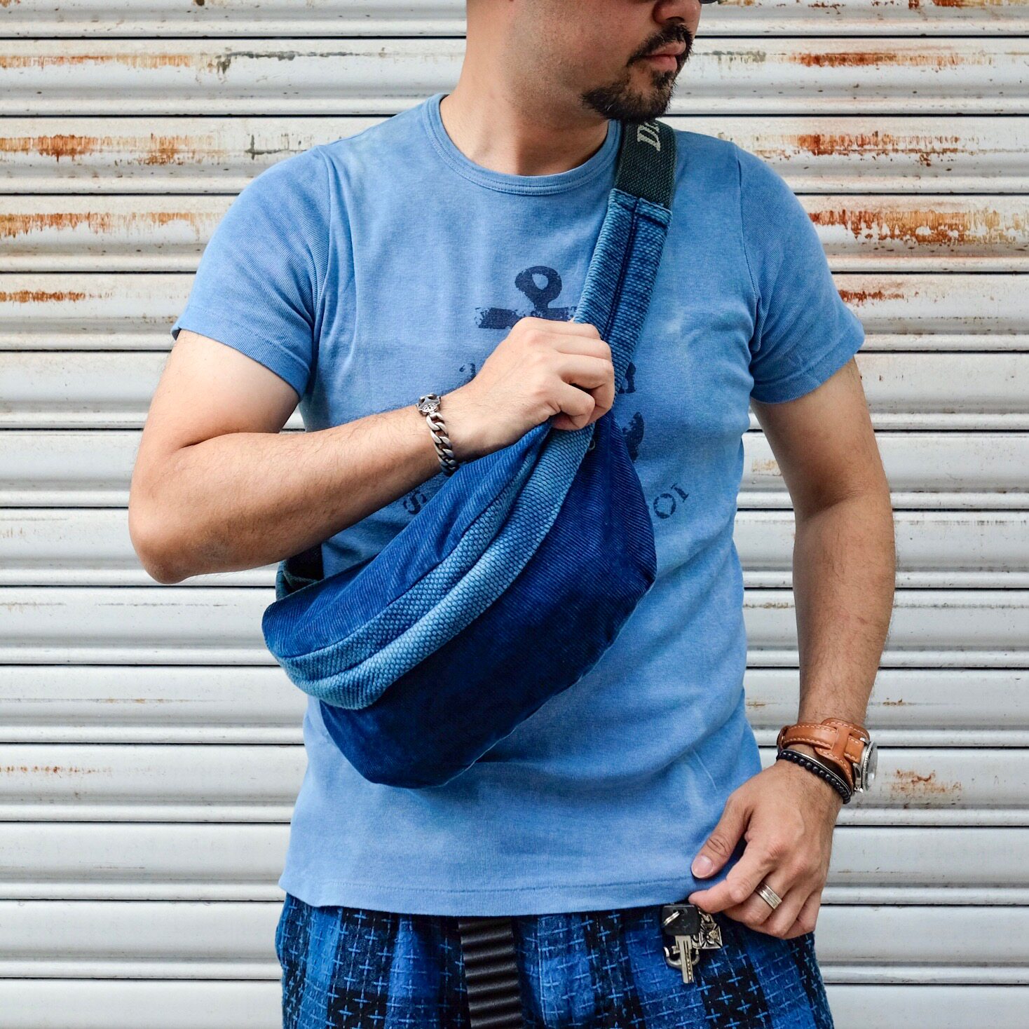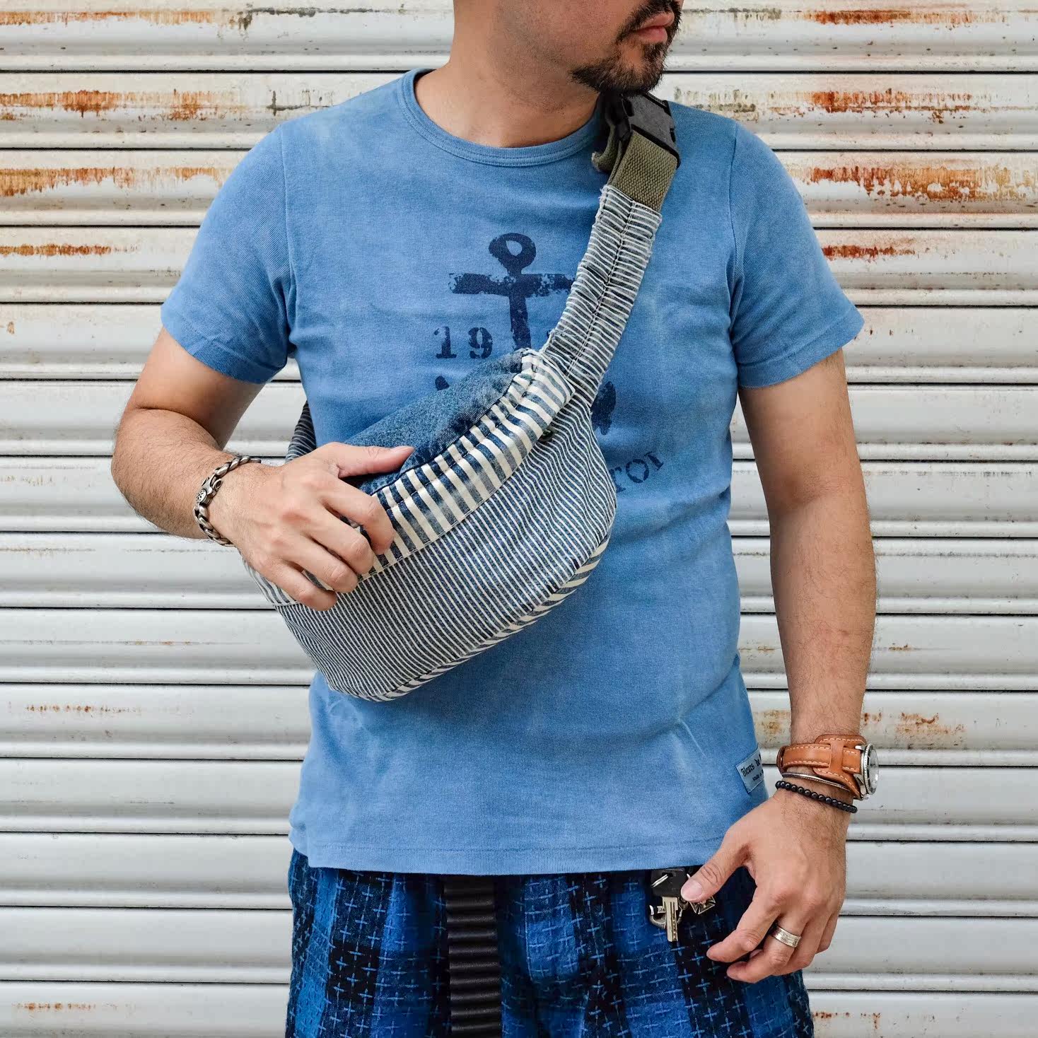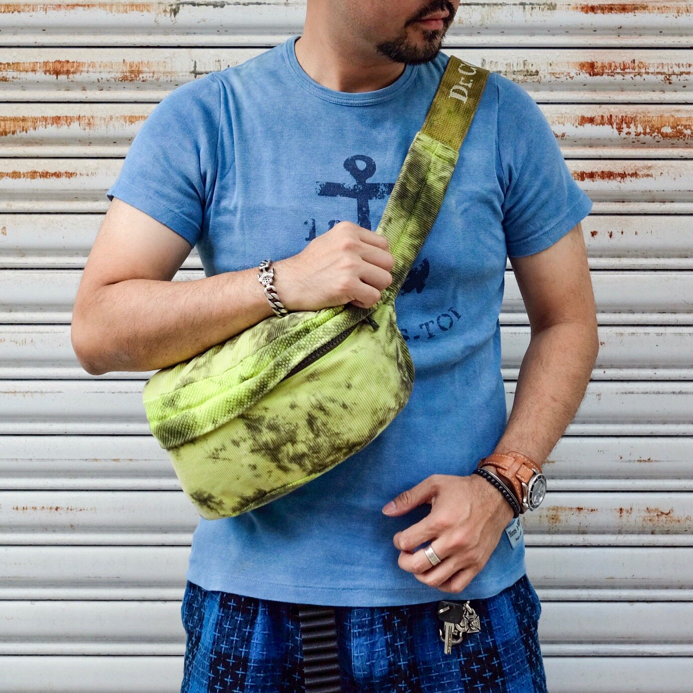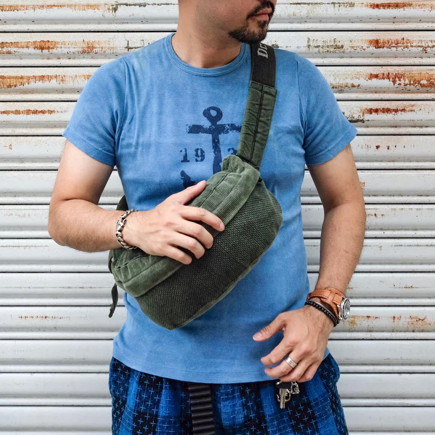 Dr Collectors natural hand-dyed thorn cloth and corduroy antique cloth chest bag and waist bag
