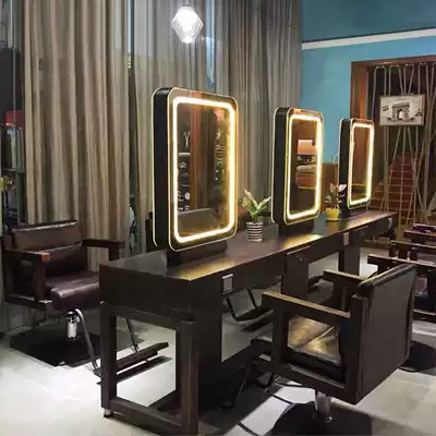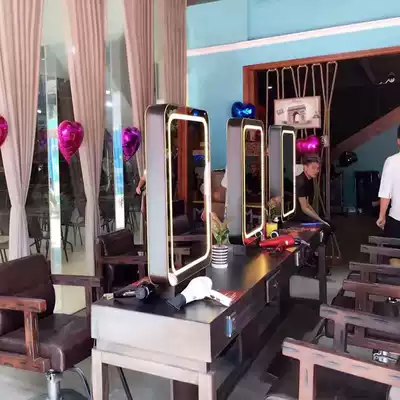 Solid wood with lamp hairdressing mirror Single mirror Double mirror Four-sided mirror Hair salon hair cutting makeup hot dyeing mirror table