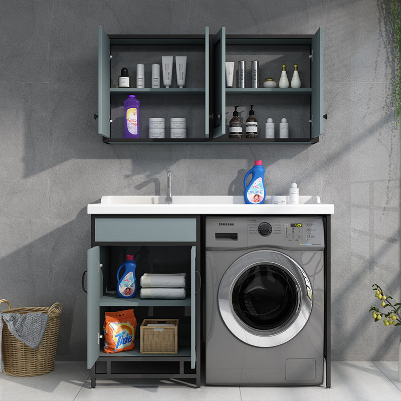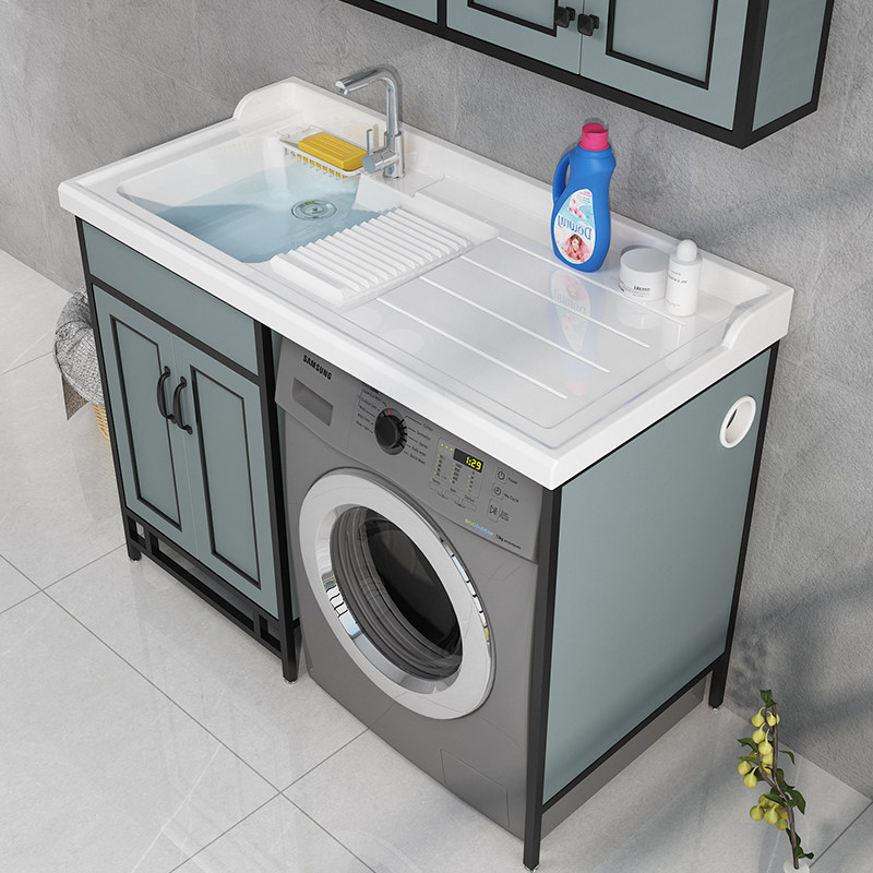 Balcony space aluminum washing machine cabinet combination with washboard Powder room bathroom cabinet Wash table one-piece companion cabinet