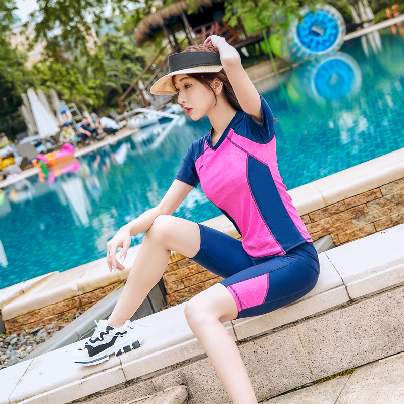 New two-piece skirt-style swimwear woman covered with slim 50% pants three sets student movement big size
