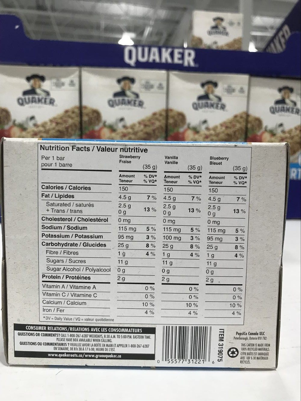 Canada Direct Post Quaker Guiger Fruit yoghurt Cereal Energy Stick 34 1 19kg