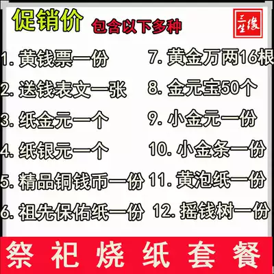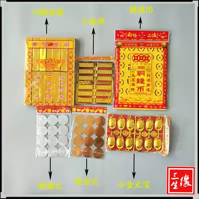 Qingming Festival Sacrificial supplies Package Wuqi Worship ancestors burned paper money Pluto coins Yellow framed paper Gold Ingot Tinfoil Gold bars