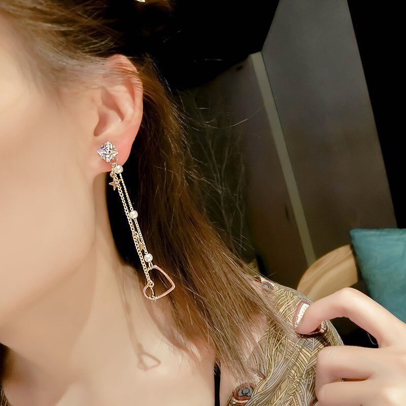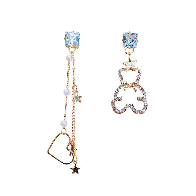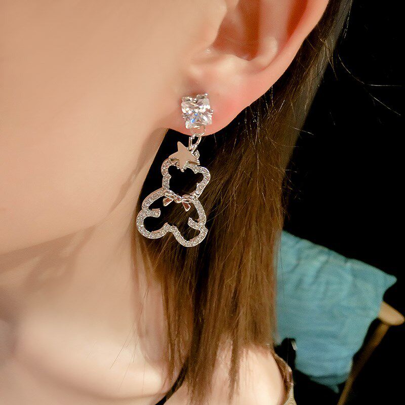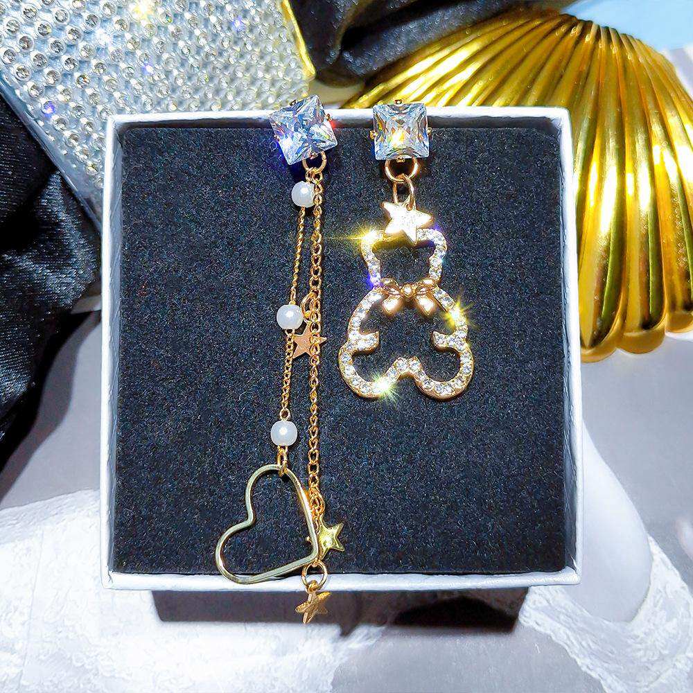 Korean Temperament Asymmetry Little Bear Earrings Personality Long Version Love Stream Sueared Nets Red 100 Hitchhiker Ear Accessories