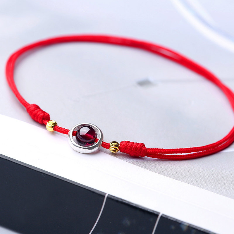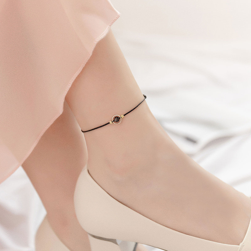 Net red Sextable lettering red rope footchain Women Summer 2022 New pure silver braided pomegranate stone Life Foot Rope