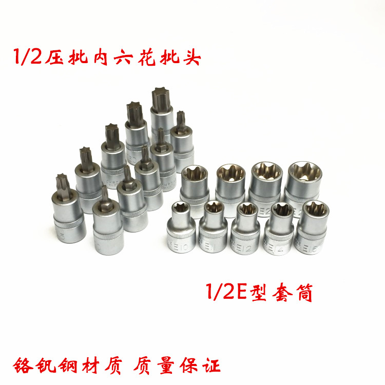 E-type sleeves pressed batch sets of large flying 1 2 flower type inner hexagonal sleeve screw-fitting sleeve batch head combined five gold tools