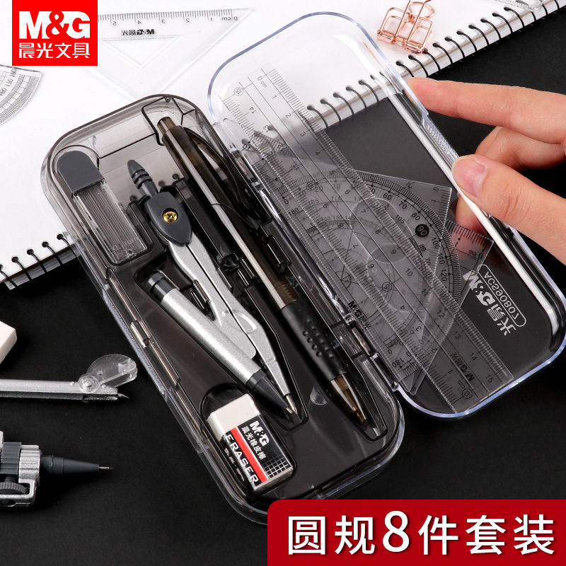 Chenguang multi-function compass metal stainless steel compass ruler set student stationery professional practical protractor Confucius temple prayer drawing exam drawing eight sets of drawings can be clipped