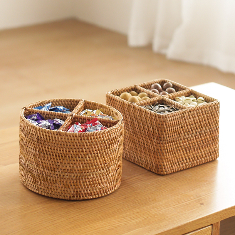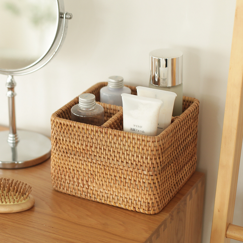 Vietnamese Rattan Woven Four Grids of Desktop Containing Box Woven Cosmetics Storage Box Separation Finishing Basket Pen Holder