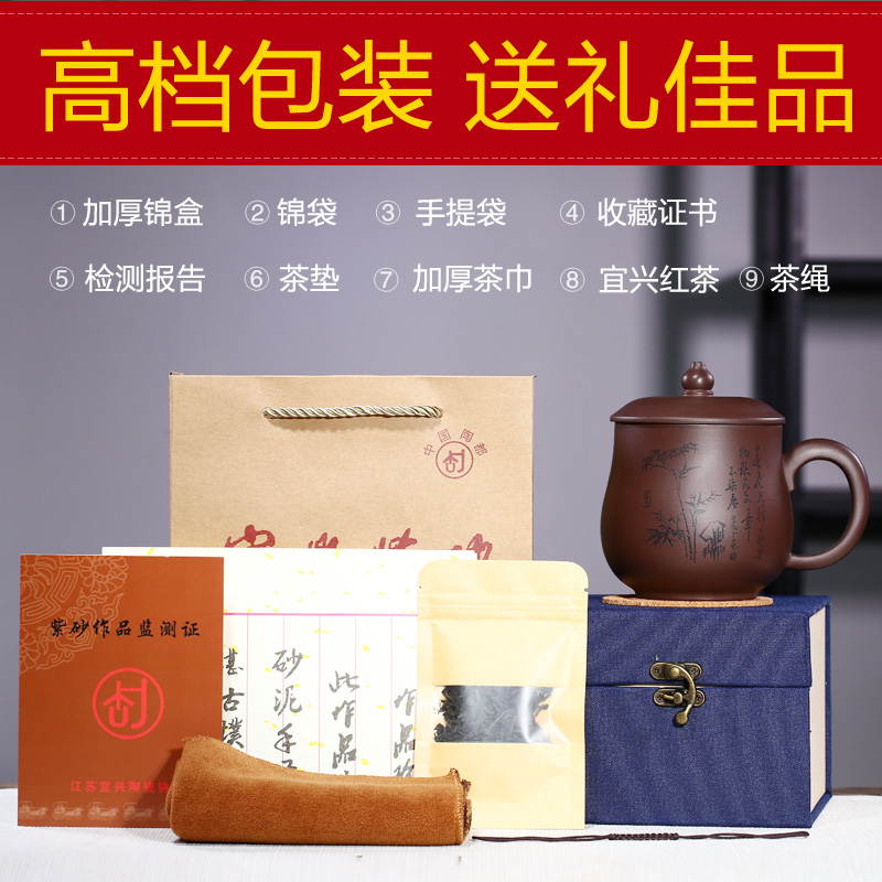 Yixing original mine Purple sand cup Handmade large capacity teacup Men's insulation cup with lid Household custom lettering