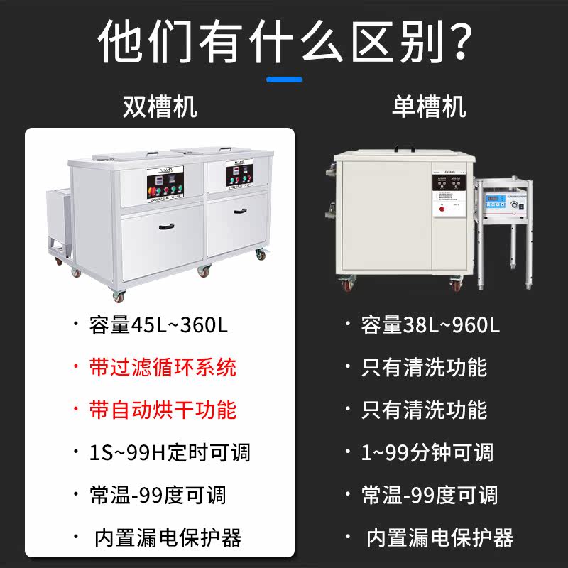 Fuyang double sink industrial ultrasonic cleaning machine high-power filter rinse cleaner can be customized drying