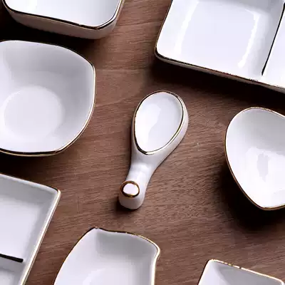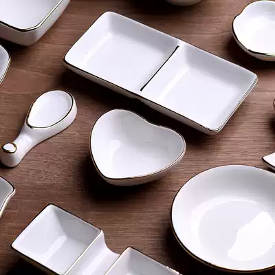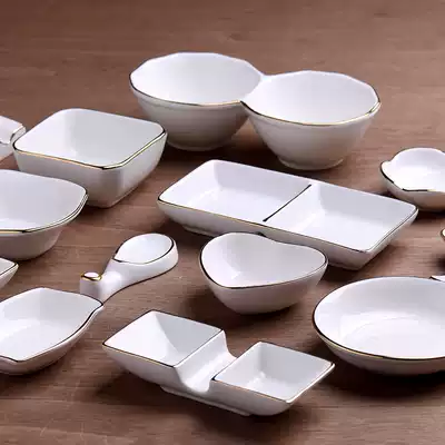 High-end hotel household Phnom Penh ceramic two-grid taste dish soy sauce saucer vinegar plate seasoning plate dual-purpose three-purpose chopsticks rack