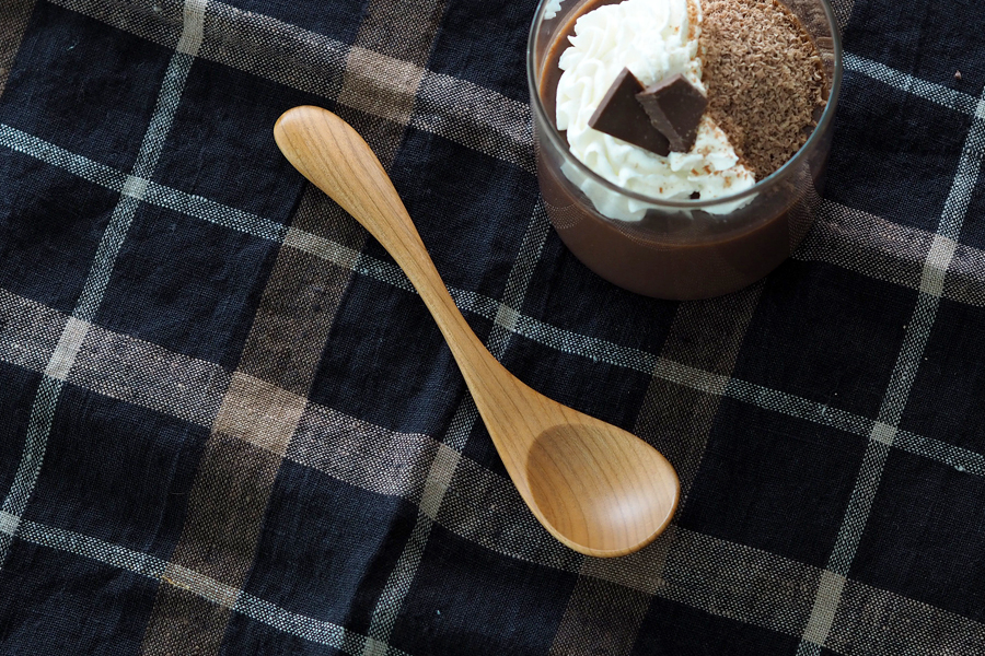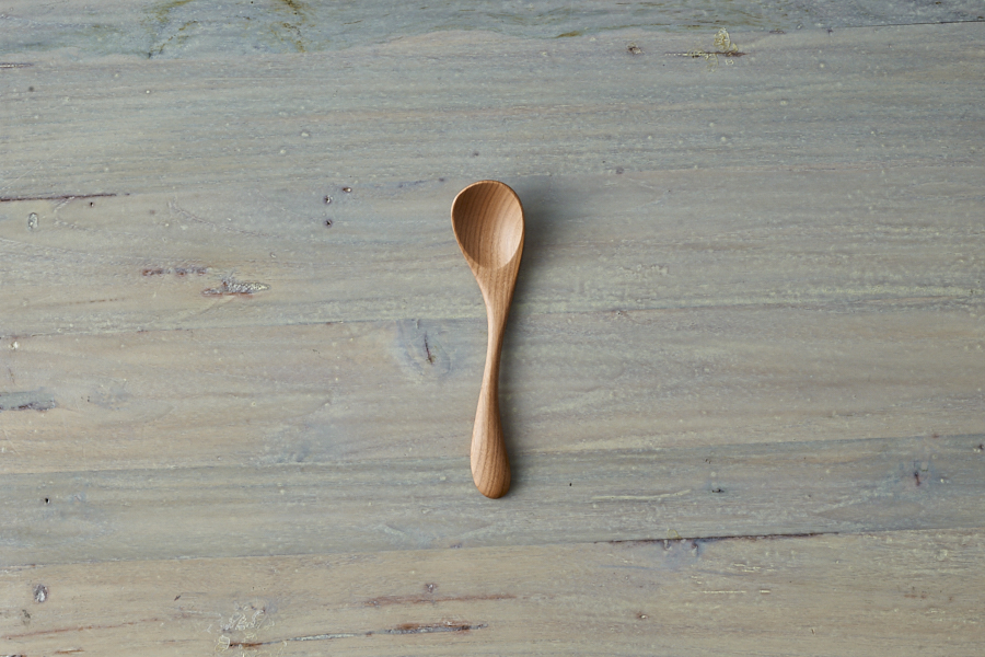 A dessert yogurt spoon dug to the end) Japanese hand-made carpentry writer Nishimura Yasuo left and right hands