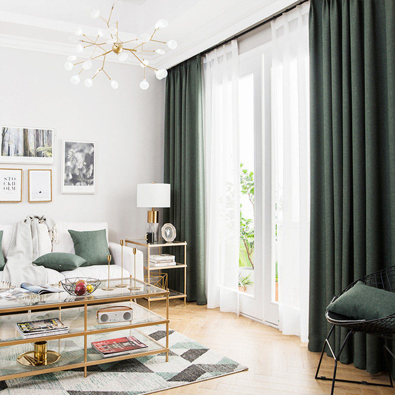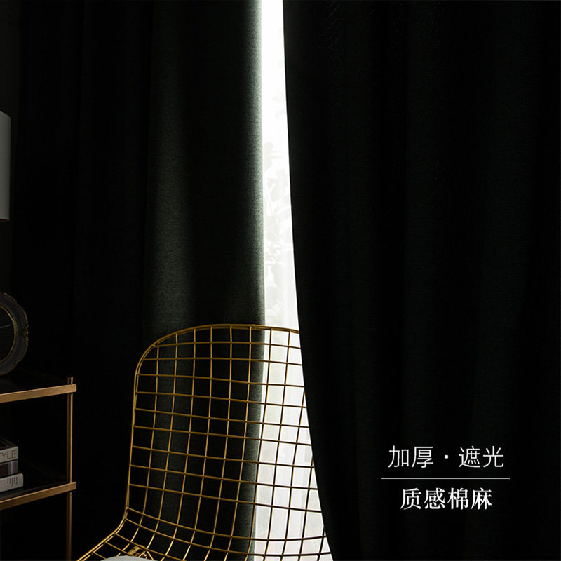 Cotton and linen curtain fabric Linen finished living room floor-to-ceiling window Balcony Solid color hook-up custom shade Bedroom bay window
