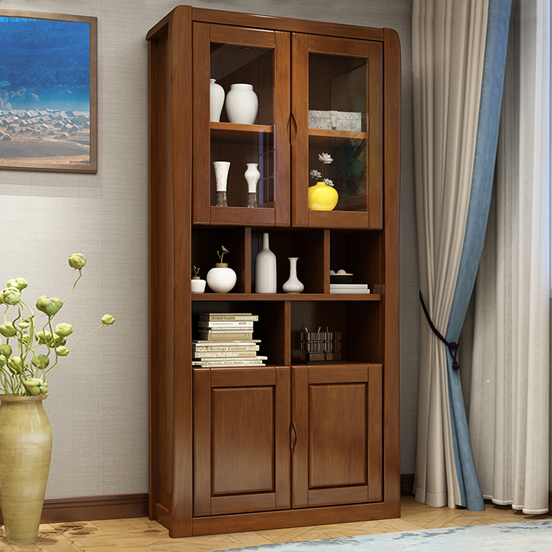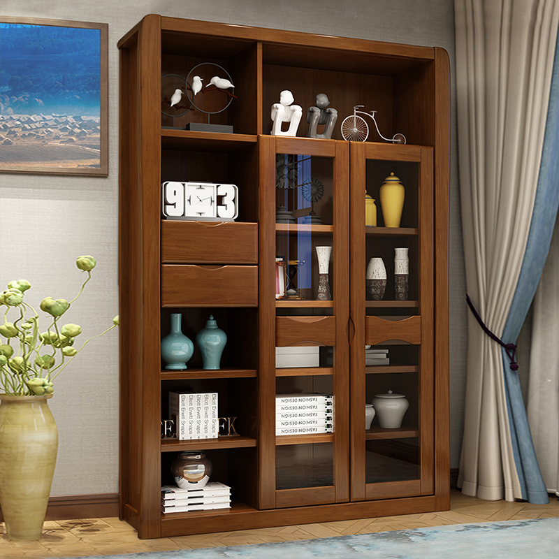 Xinglong Fanghua Chinese-style study solid wood bookcase modern minimalist overall with door bookcase 2 door 3 door combination