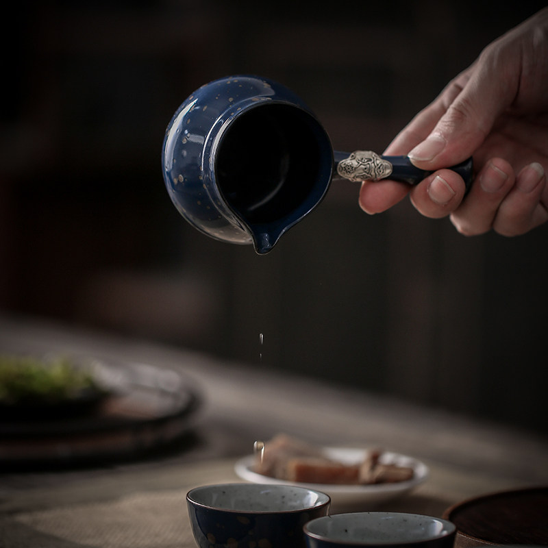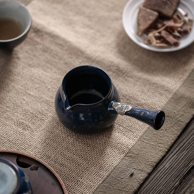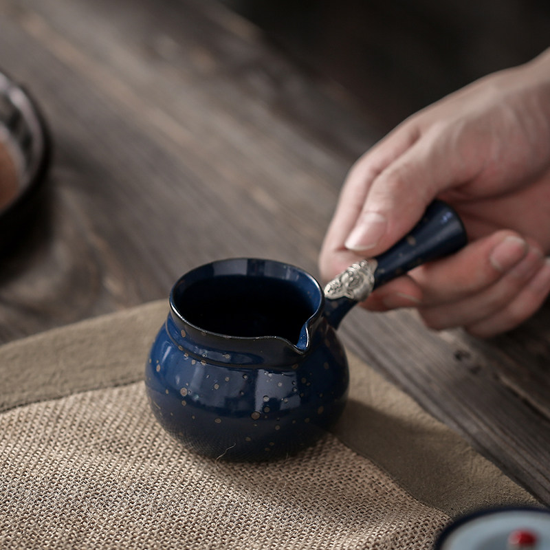 Japanese silver minimal side of the fair cup ceramic tea leakage set anti-hot tea divider Creative tea sea large household