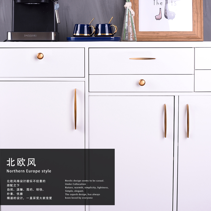 Nordic modern minimalist handle Mediterranean light and luxurious overall cupboard wardrobe cabinet door drawer handle yellow ancient bronze retro handle