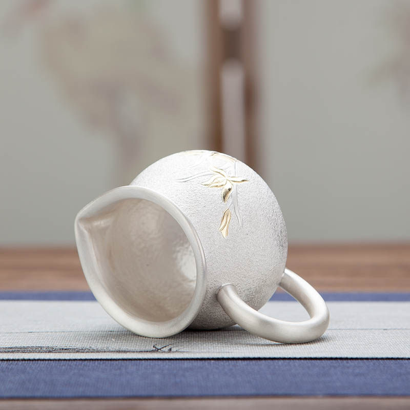 Pure silver fair cup pure silver 999 Orchid gold plated Gongfu tea with home tea path Sub-tea Tea Dao Accessories Silver