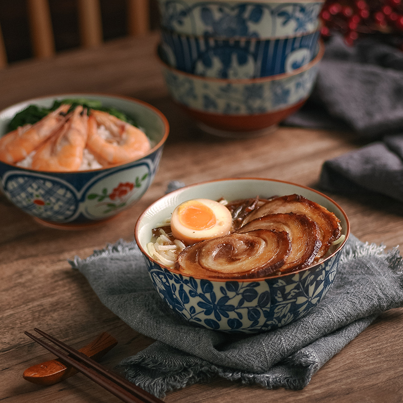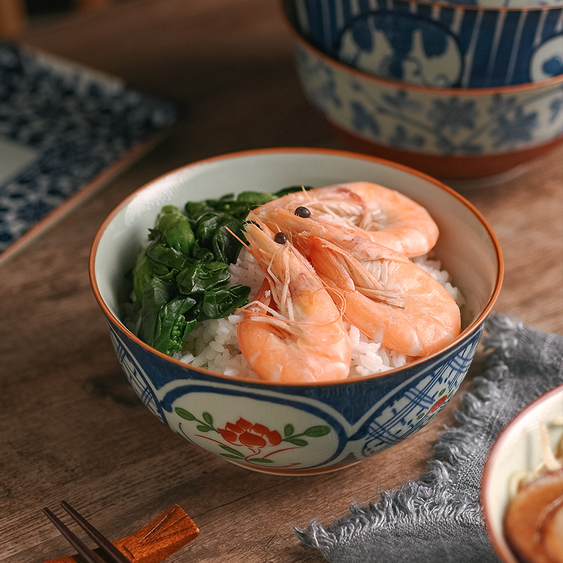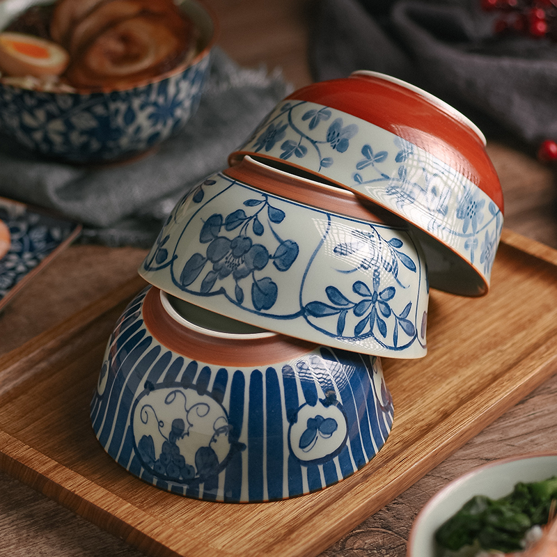 Pozo sees the Jingqiu dye hand drawn rice bowl Japanese imported ceramic tableware set 5 inch household food bowl