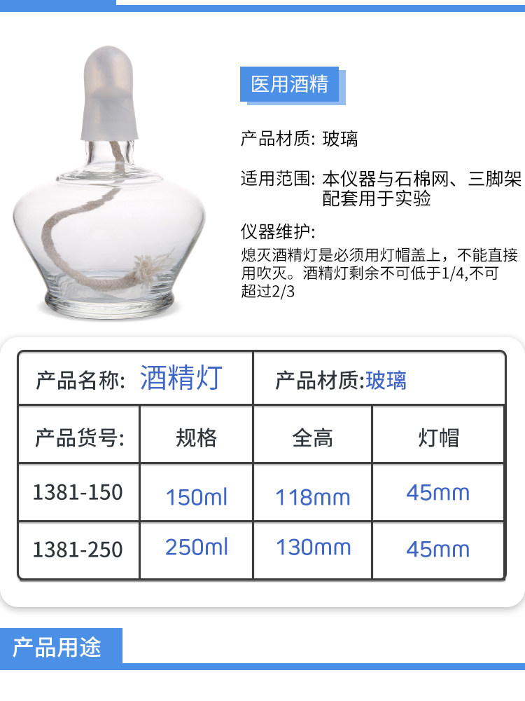 Thickened glass alcohol lamp home laboratory heating set cupping stainless steel explosion-proof cotton wick