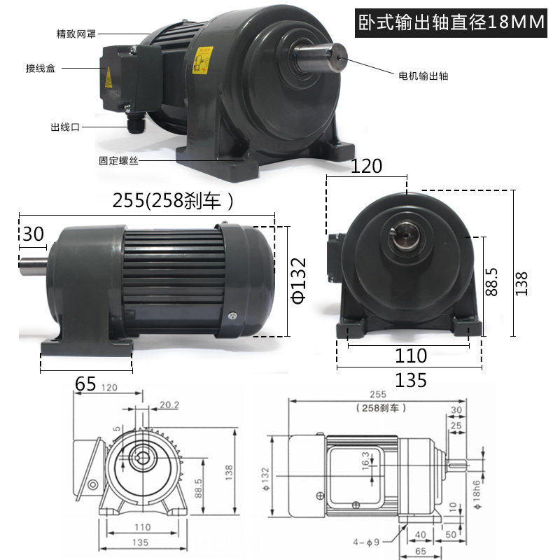Three-phase 380V200W400W750W vertical horizontal AC gear decelerating motor frequency conversion throttle low speed motor-Taobao