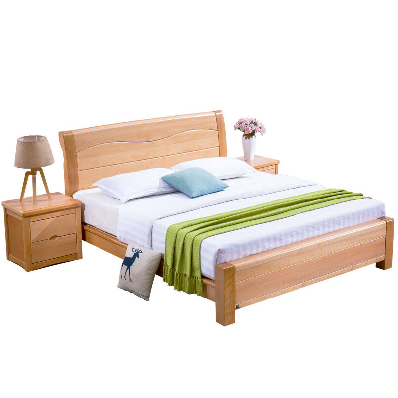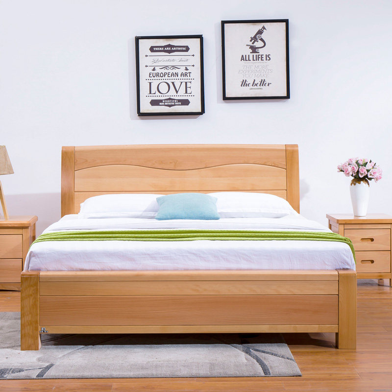 Deluxe solid wood beech beech double bed simple new Chinese box high box storage 1 8m 1 5 m log