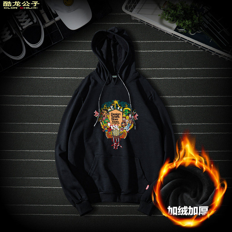 2020 new spring and autumn season velvet thickened hooded loose sweater men's fashion brand trend long-sleeved couple hoodie