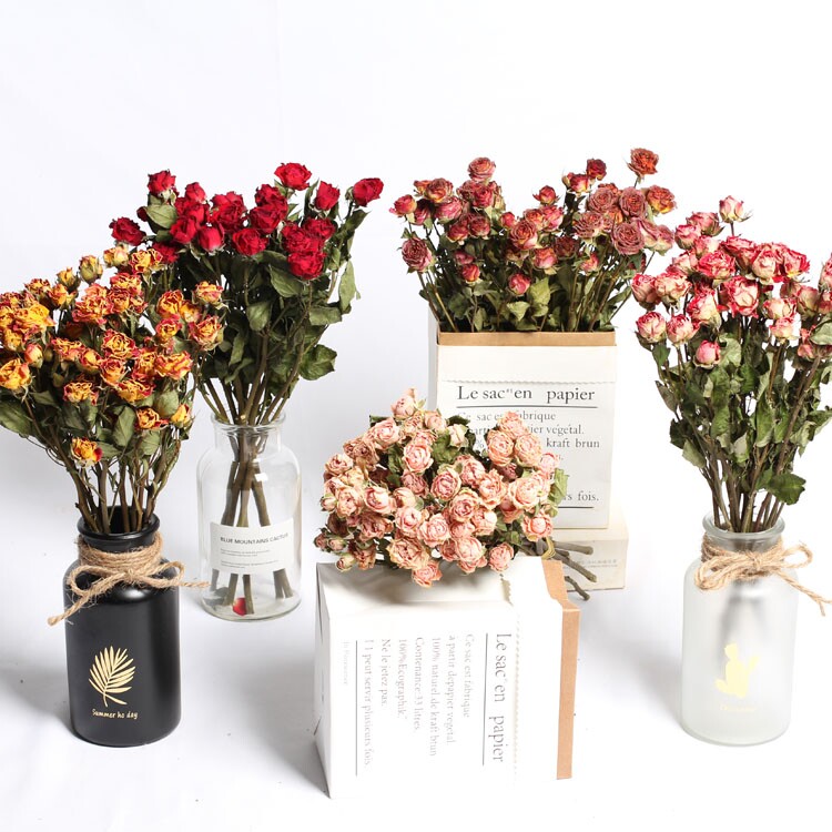 Multi-head full Star Rose Rosary Dried Flowers Bouquet Dry Flowers Bouquet Garnish With Floral Decoration Livingroom Pendulum with flower arrangements