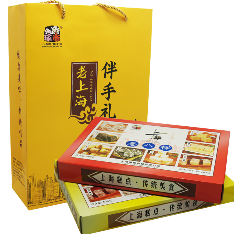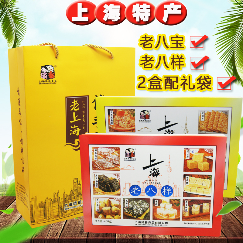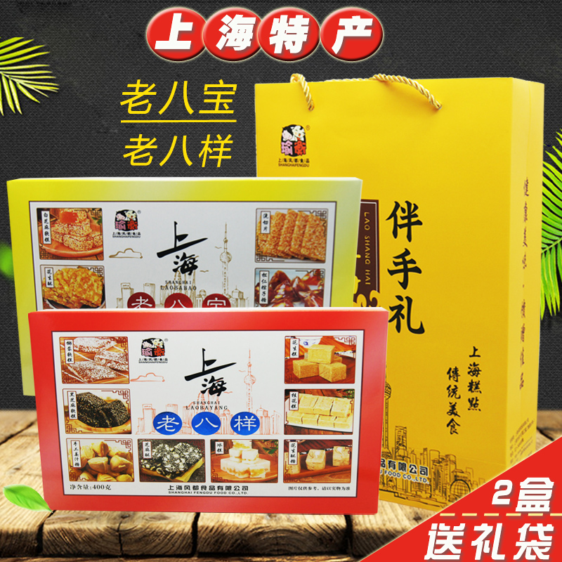 Shanghai specialty gift box with hand gift, old eight treasure, old eight kind 400g, 2 boxes of gift bag, yu heng fengDu cakes and snacks