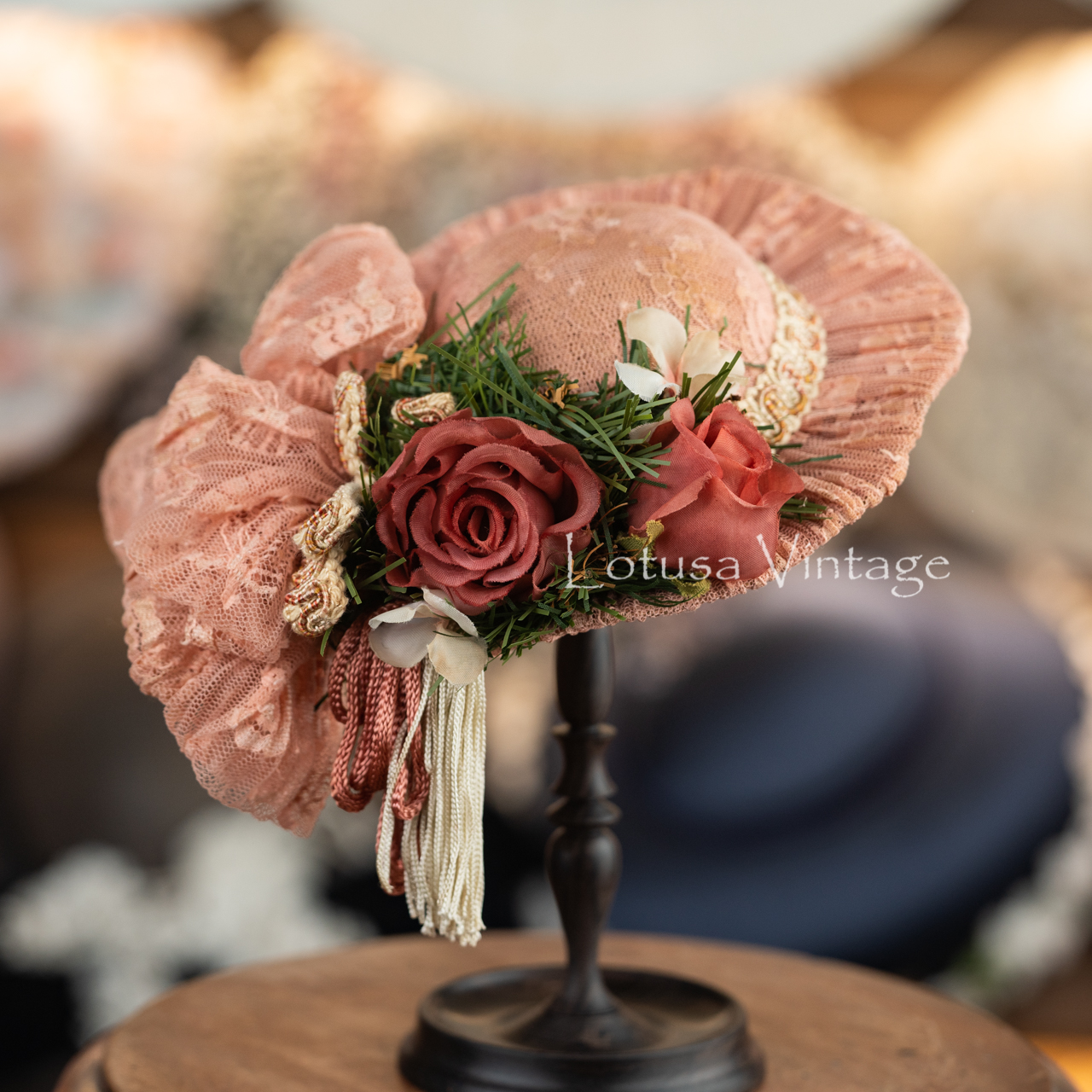 Lotus Vintage Independent Design Red Wood Solid Wood Hat Rack Small Cloth Cap Shop Window Props Show Shelf