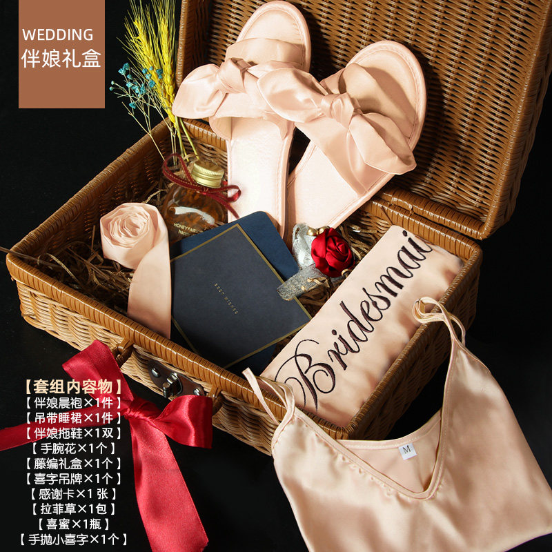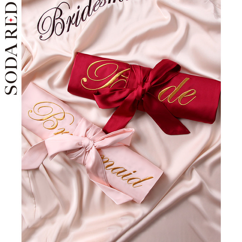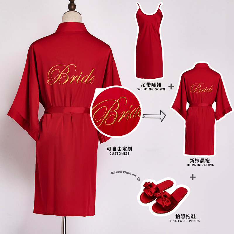 Morning gown bride ice silk pajamas female spring and autumn nightgown wedding bridesmaid wedding silk sexy bathrobe sister group bathrobe