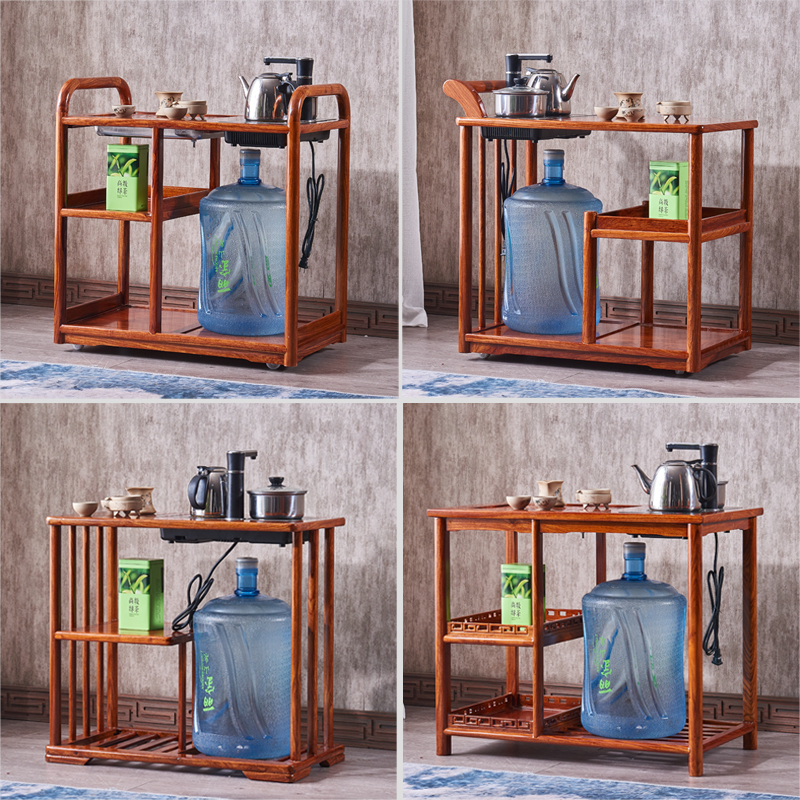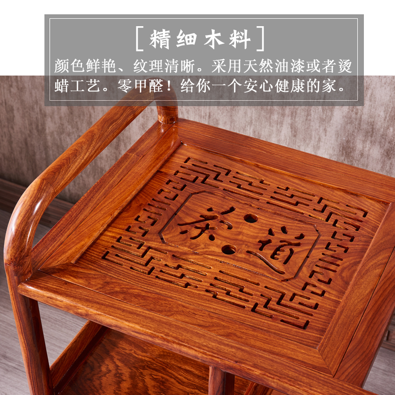 Hedgehog red sandalwood mahogany tea cart living room household tea table solid wood mobile mini tea table tea table tea table tea