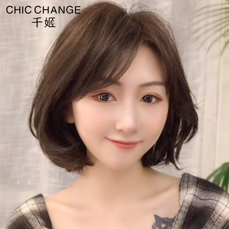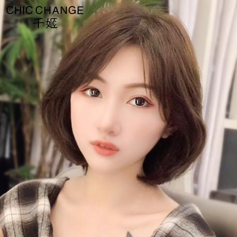 Qianhe wig female short hair styling real hair Full head cover Full real hair natural net red round face Bobo hair set