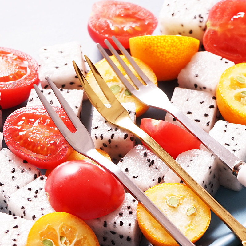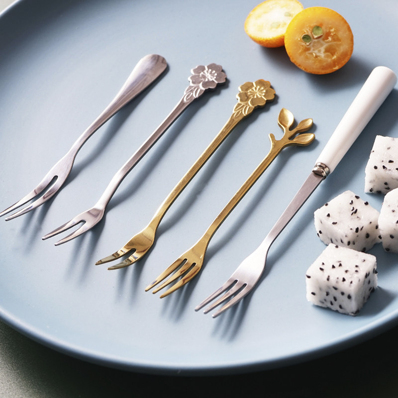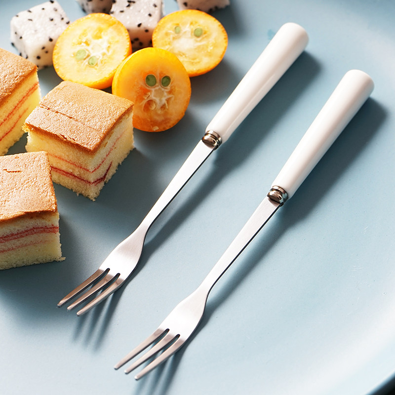 Stainless steel fruit fork set Dessert dessert cake Fruit eating fork tag ceramic household creative cute